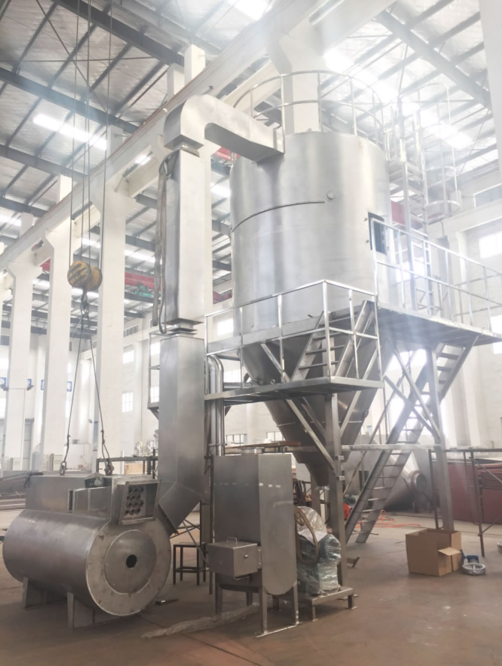 本設(shè)備主要用于乳制品、食品、生物、果蔬等行業(yè)。該壓力式噴霧干燥設(shè)備生產(chǎn)出的產(chǎn)品呈顆粒狀、圓整度高。